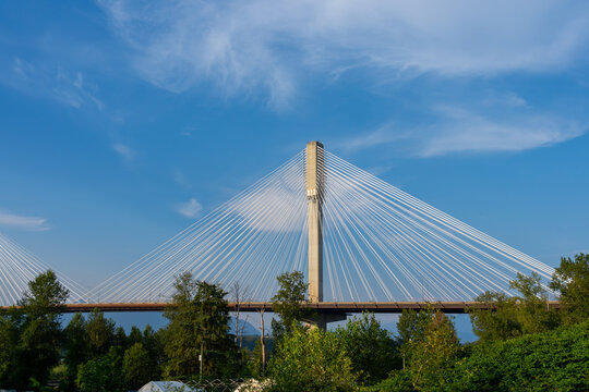 Port Mann Bridge in Surrey, British Columbia,  Canada, on July 6, 2023. The Port Mann Bridge is a 10-lane cable-stayed bridge in Surrey.