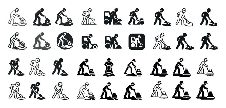 Silhouettes of construction workers using hammers, kneeling and standing, performing carpentry tasks, building, repairing, working on site, craftsmanship, labor, and trades