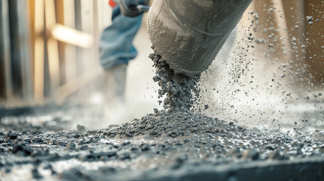 Construction Worker Pouring Wet Concrete at Building Site Close Up