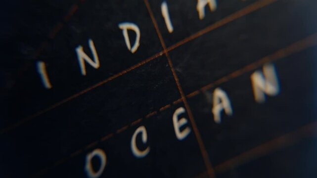Indian ocean illustrated Earth map macro view. Name geographical object marked