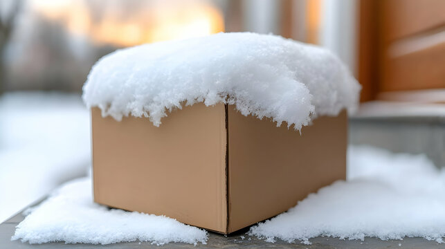 Snowy winter package delivery doorstep