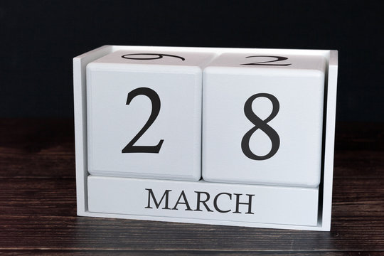 Business calendar for March, 28th day of the month. Planner organizer date or events schedule concept.