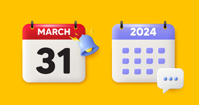 Calendar date 3d icon. 31th day of the month icon. Event schedule date. Meeting appointment time. 31th day of March month. Calendar event reminder date. Vector