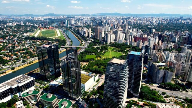 Aerial View of Marginal pinheiros, W.Torre complex and Parque do Povo