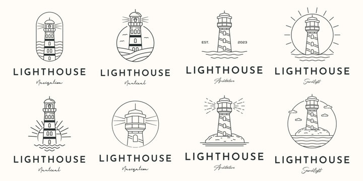 Nautical icons set: lighthouse, anchor, seagull, lifebuoy, and more