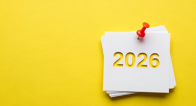 2026 marked on paper with red pin and yellow background