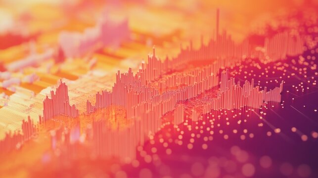 Abstract orange financial data chart is showing market fluctuations in a colorful and dynamic way, representing the complexity of financial markets