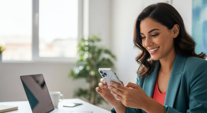 Connected and Productive: Woman Using Smartphone for Business and Freelancing - Office Workplace, Internet Marketing, Entrepreneurial Spirit, Technology in Action