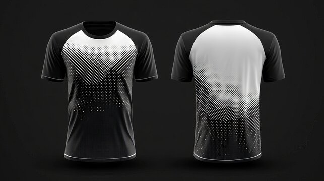T-shirt jersey design with geometric halftones, front view mockup. Sport club template.