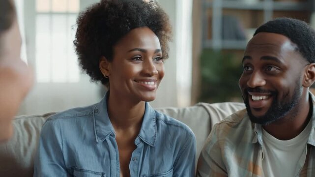 Expecting couple sitting on a cozy couch, the partner lovingly touching the pregnant belly, capturing the emotional intimacy, joy, and anticipation of welcoming a new baby into their lives