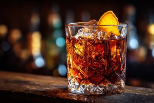 Martinez Cocktail: A Beautiful Closeup of Classic Gin Beverage Against a Stylish Bar Background