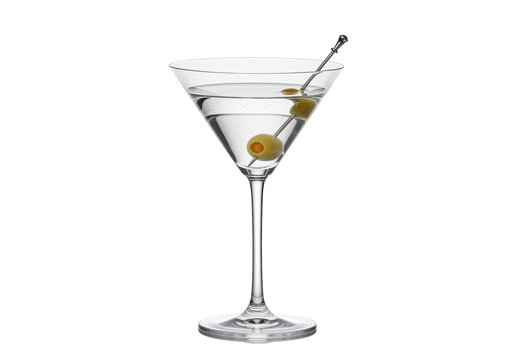 Isolated clear martini cocktail with gin and olives in elegant glass ready to be served
