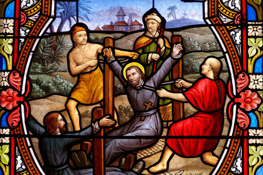 Stained glass (1911) of Saint François Régis Clet. Catholic priest, Lazarist, martyred in China. Saint of the Roman Catholic Church.