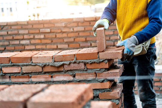 brick blocks installing in construction site