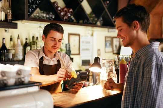 Customer Paying With Credit Card In Cafe