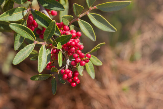 The mastic tree (Pistacia lentiscus), a valuable treasure of the Mediterranean, thrives with resinous charm, symbolizing tradition and vitality in its evergreen beauty.