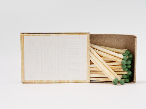Vintage Matchbox with Red-Tipped Matches on White Background. AI Generated