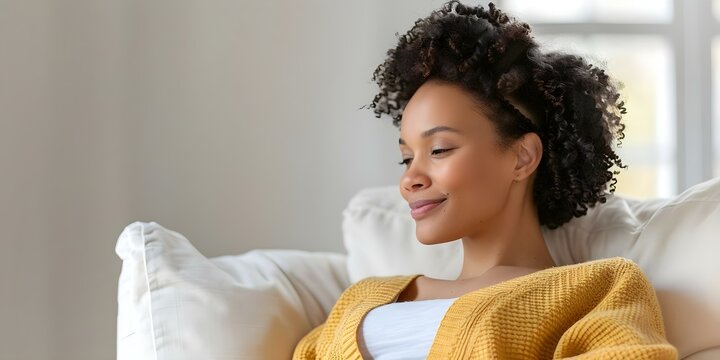 Serene pregnant woman practicing breathing exercises in relaxing home setting