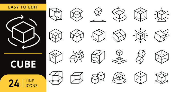Cube line icon set. geometric shape vector illustration collection.