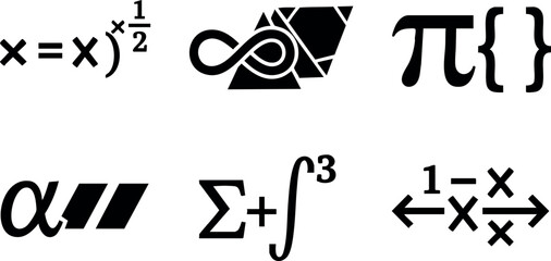 Mathematical symbols and equations vector set with integrals, pi, alpha, and infinity signs illustration