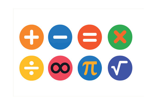 Mathematical symbols and operators on white background