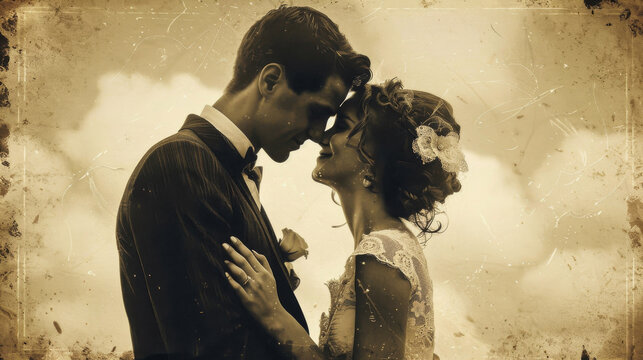 a sepia-toned moment of a wedding couple vintage wedding template