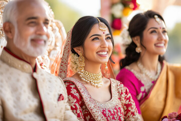 happy indian bride standing with mother and father