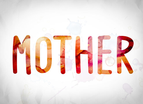 The word "Mother" written in watercolor washes over a white paper background concept and theme.