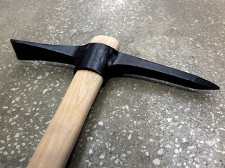 Pick Mattock on the concrete plate, selective focus