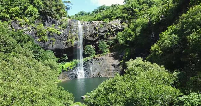 Drone view of the 7 Tamarin waterfalls on Mauritius Island