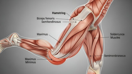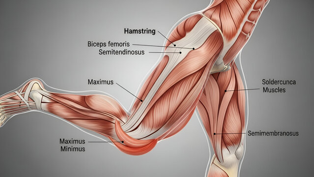 Human leg muscle anatomy diagram showcasing hamstrings biceps femoris and semitendinosus for