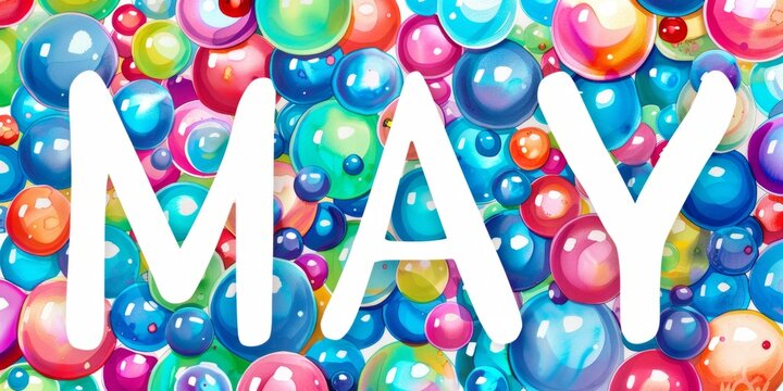 "MAY" in bold white letters is set against a background of colorful bubbles, creating an enchanting and playful atmosphere Generative AI