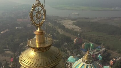 Mayapur ISKCON TOVP temple in Nabadwipa, India, aerial drone view 4k