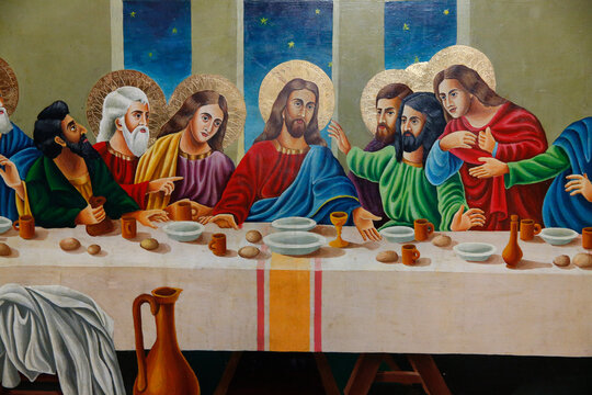Unleavened bread (matzo), wine glass, holy bible, and wheat on wooden table. Top view. Christian Passover food, spiritual harvest, biblical concept.