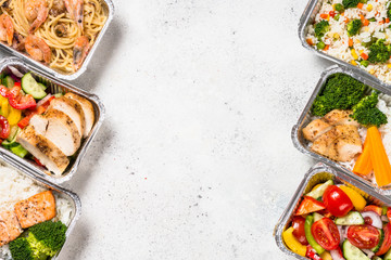 Fitness meal prep lunch box with grilled salmon, sweet potato, and broccoli, healthy food, lunch box