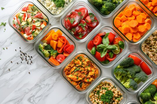 variety of modern thai food portions in black plastic take away containers healthy meal solutions for lunch dinner food looks fresh ready to eat image suitable for food delivery services catering