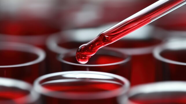 Crimson liquid drop precisely measured using calibrated pipette in laboratory setting for scientific analysis