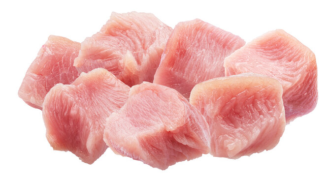 raw, cubed turkey meat against a black backdrop