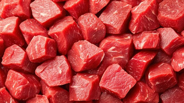 Closeup of the meat, highlighting its natural texture and colors, set against a white background. Elegant presentation that highlights their quality, copy space for label