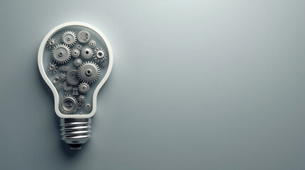Creative idea concept, light bulb with gear vector 3D isometric icon or illustration, innovation and solution, technology and technics, research and knowledge.