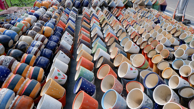 Colorful potteries made by clay for sale.