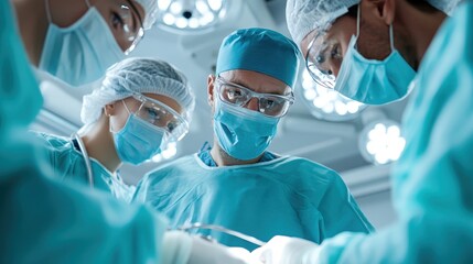 A group of surgeons deeply immersed in their work, portraying the essence of collaboration in surgery and the vital importance of precision in life-saving medical procedures.