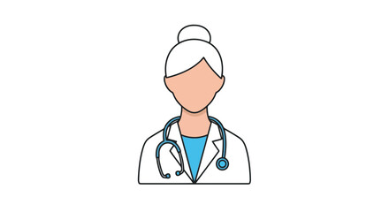 Back view. A female doctor character, radiating warmth and care, representing the healthcare industry.