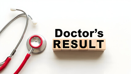 Red stethoscope and wooden blocks spelling Doctors Result medical health 1