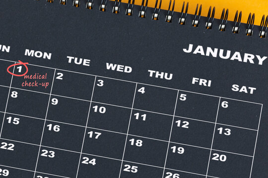 Red circle mark on the calendar at 1 for reminder of medical check up.