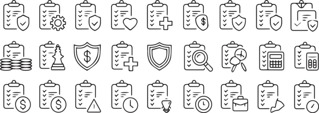 A collection of safety vests in outline vector style, suitable for industrial design and safety equipment branding