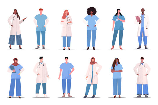 Set of doctors, nurses and medical personnel team. Professional therapist and hospital staff. Сharacter collection. Vector illustration Not AI generated