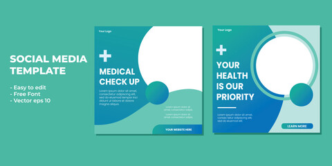 Set of medical healthcare service social media post feed square design for hospital clinic doctor and dentist health business marketing ads banner template