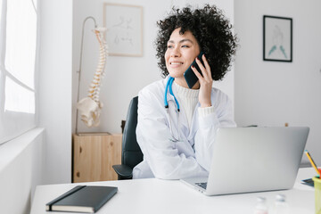 Happy woman doctor on tablet for employees management, hospital workflow and clinic staff solution on software or app. Healthcare manager on digital tech for medical team research or problem solving