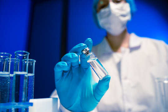 Digital visualization of molecular structure of breakthrough drug on laptop in laboratory